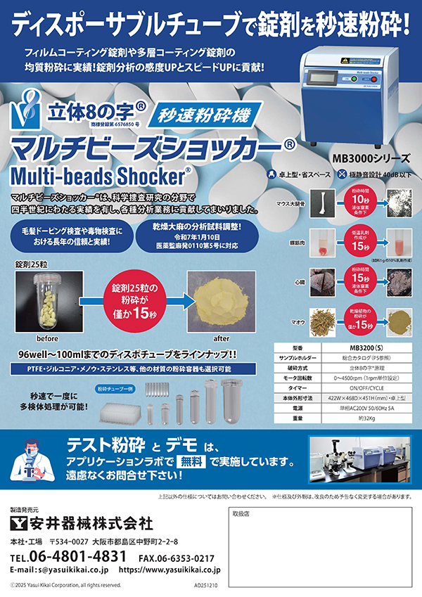 ディスポーサブルチューブで錠剤を秒速粉砕!